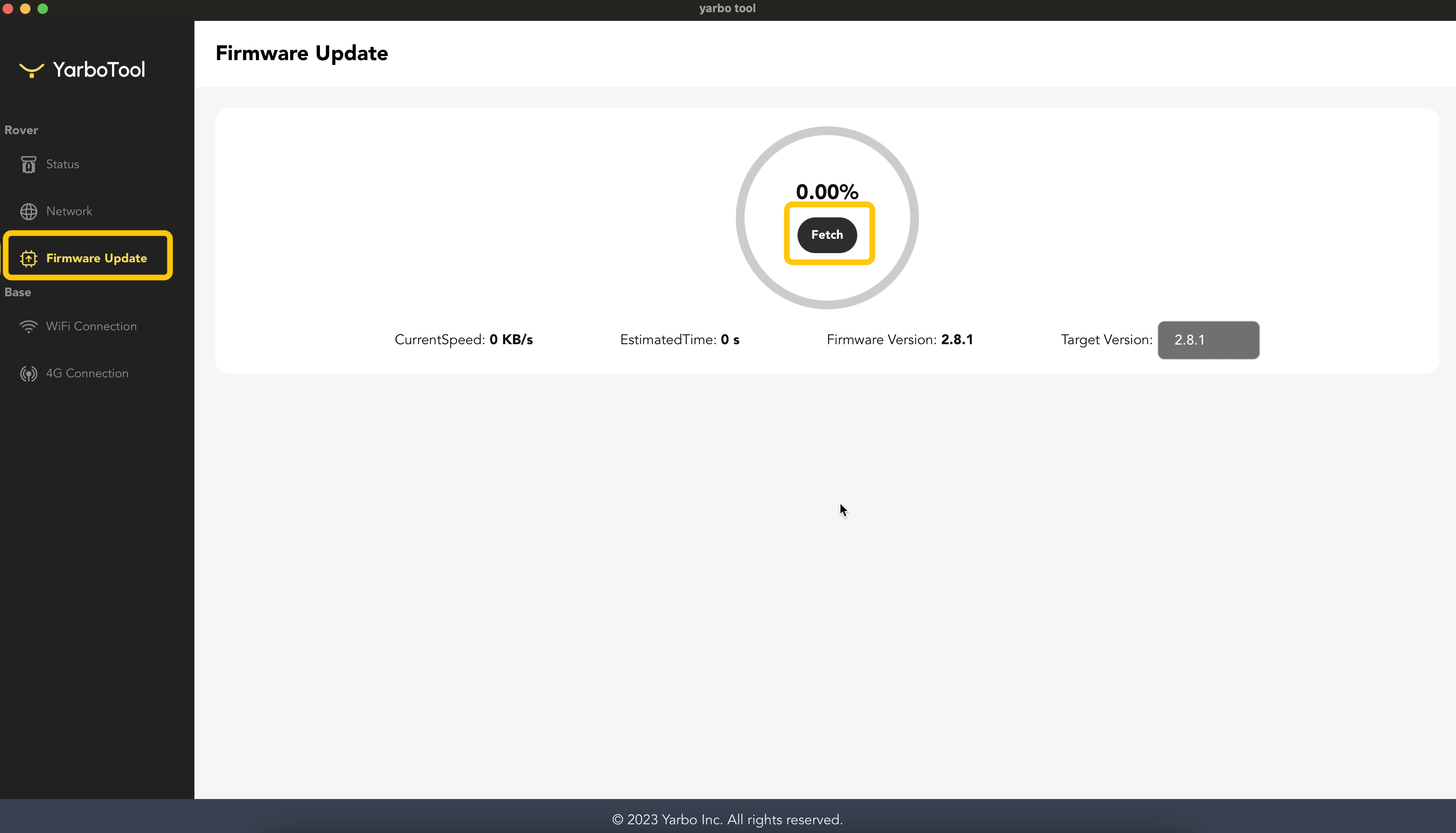 Confirm Fetch = 100% to ensure latest firmware installed.