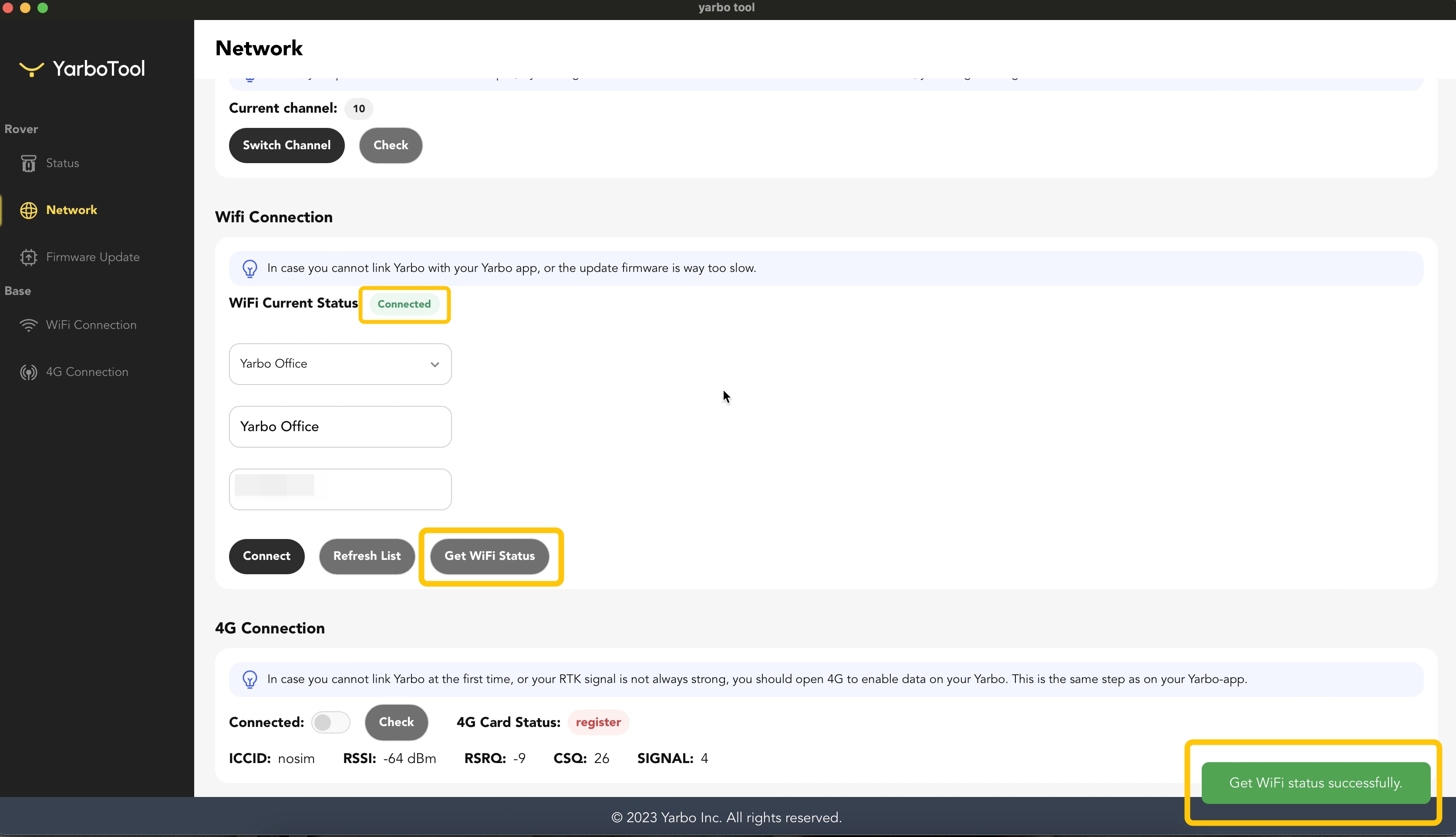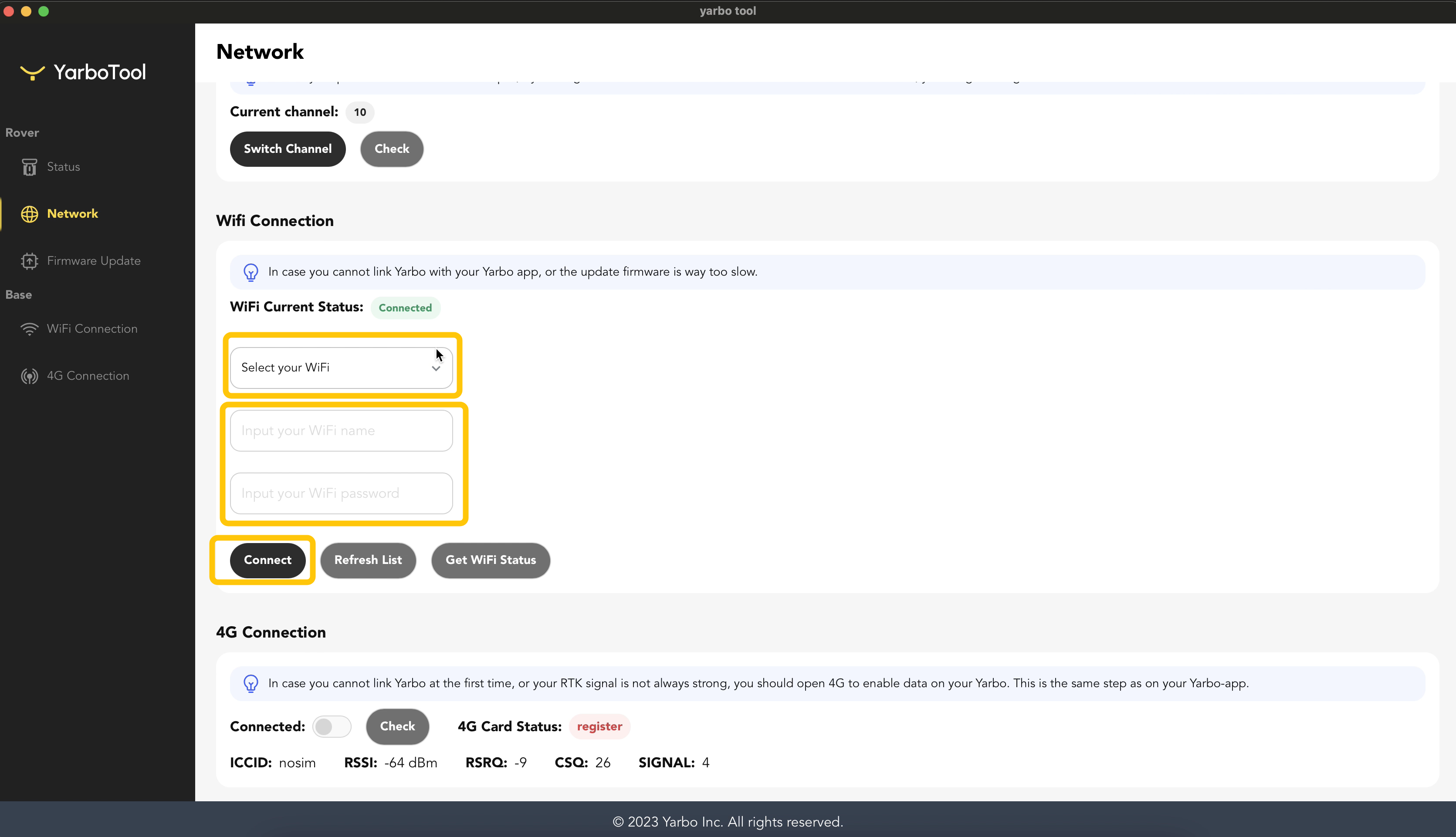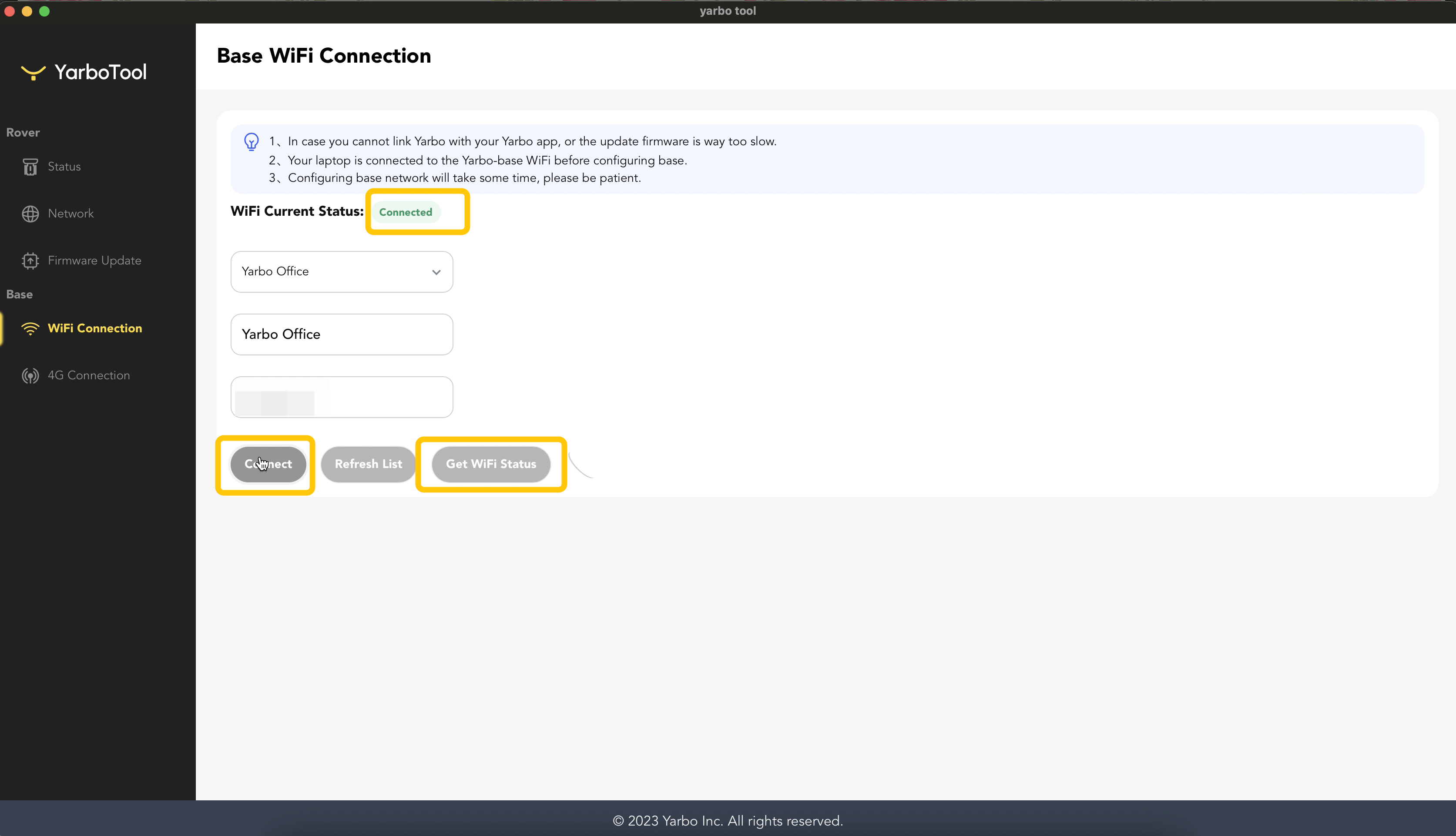 Connect to Base hotspot (e.g., Yarbo_base_XXXX