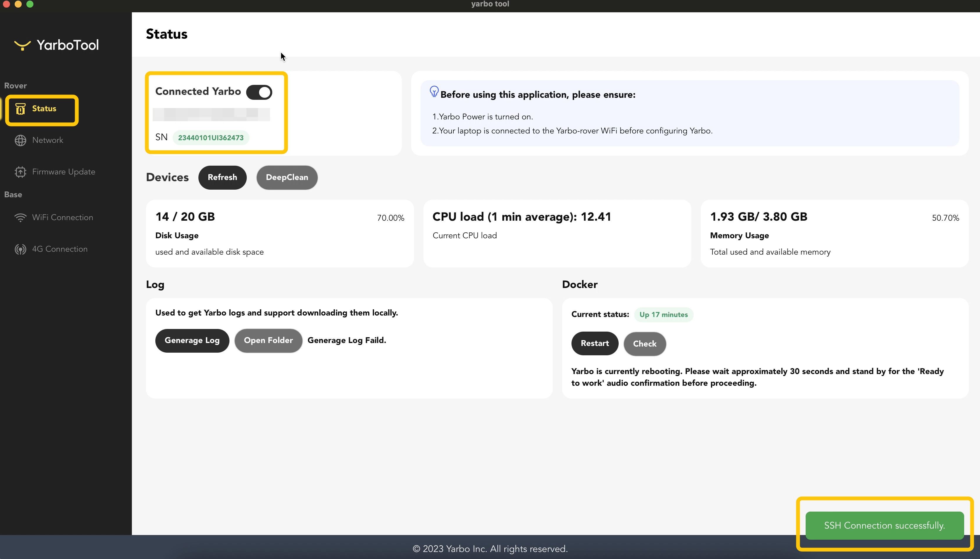 Connect to the Rover’s hotspot (e.g., Yarbo_rover_XXXX