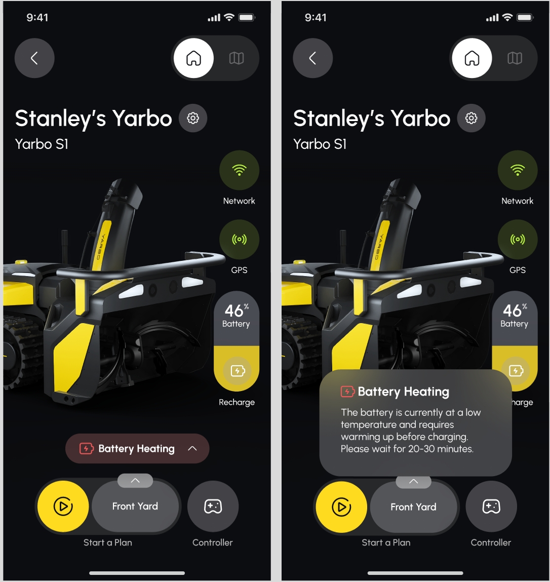 However, in the future releases, user will be allowed to manually control Yarbo during the battery heating process.