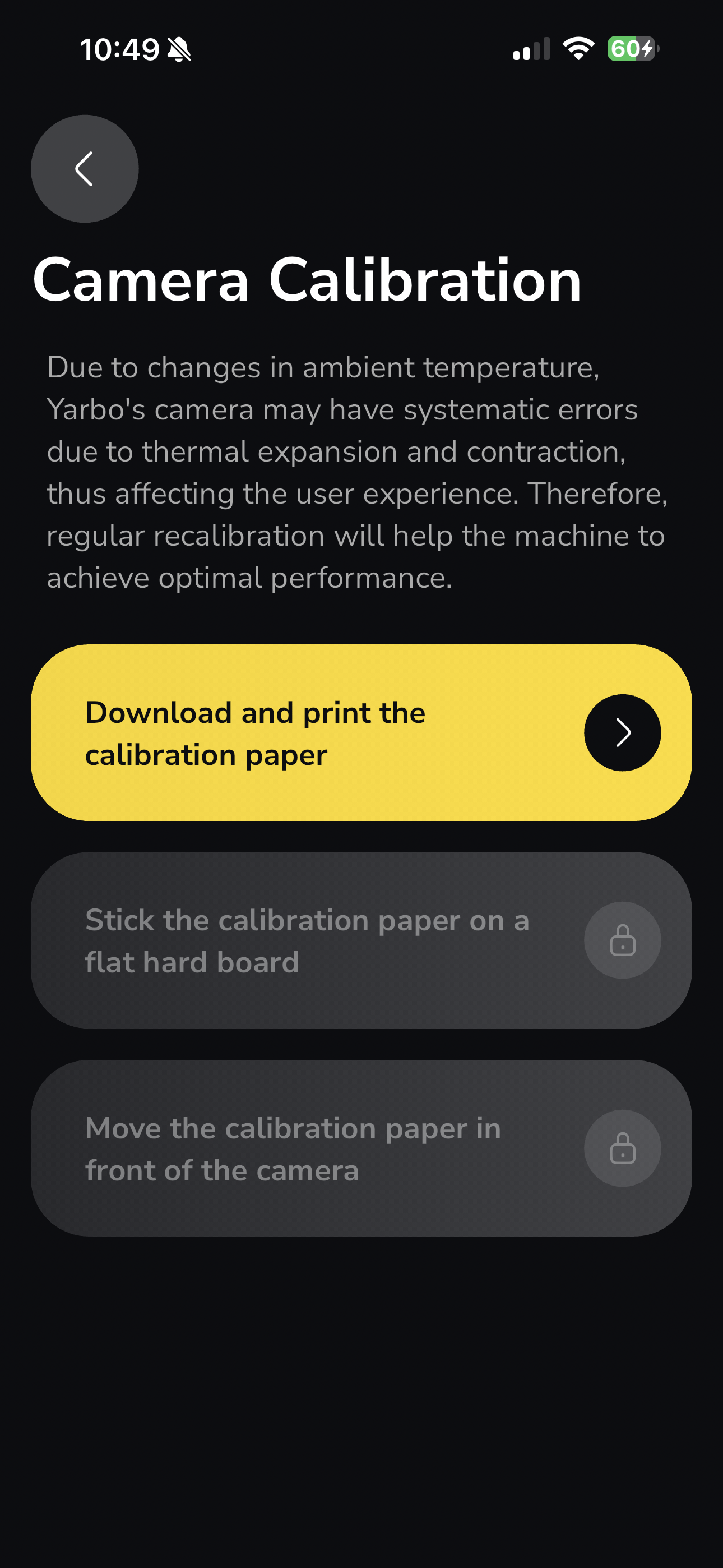 Regular camera calibration helps ensure Yarbo continues to operate accurately and reliably.