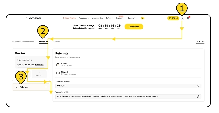 The referrer will receive 30,000 Yarbo Points.