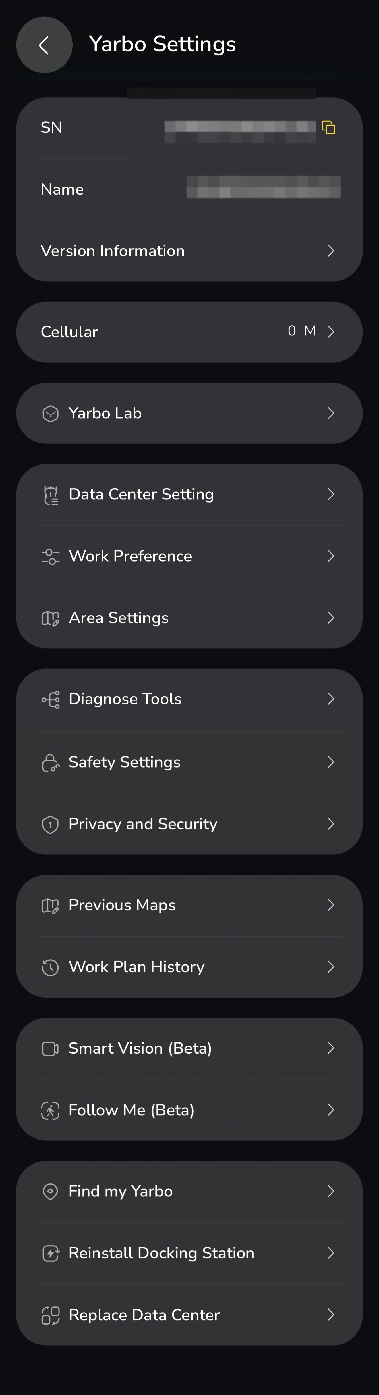 ¶ Yarbo LabThe switch defaults to ON and can be toggled as needed per scenario. Here, you can set the maximum distance Yarbo is allowed to travel without GPS signal in different scenarios: Drawing Travel Distance (Mapping), In-Area (Worki`ng Area) Travel Distance, and Boundary Travel Distance (applies to Pathways, Dead-Ends, Boundaries, or Sidewalks). ¶ Data Center Setting
