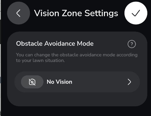 A Vision Zone lets you define specific sections of your yard where Yarbo should use different obstacle avoidance settings than the rest of the area.