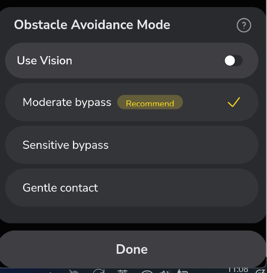 Once drawn, tap Next to configure the obstacle avoidance mode for that Vision Zone.