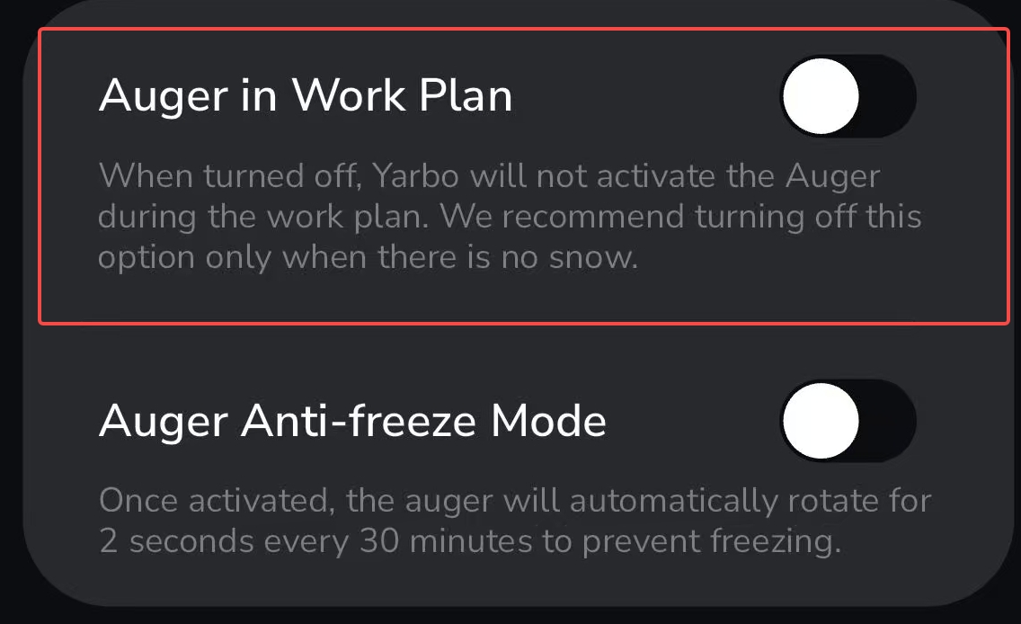 When the Auger in Work Plan setting is turned off, Yarbo will perform the entire work plan without activating the auger. The rover will still move according to the plan, following its paths and route patterns, but no snow will be collected or thrown.