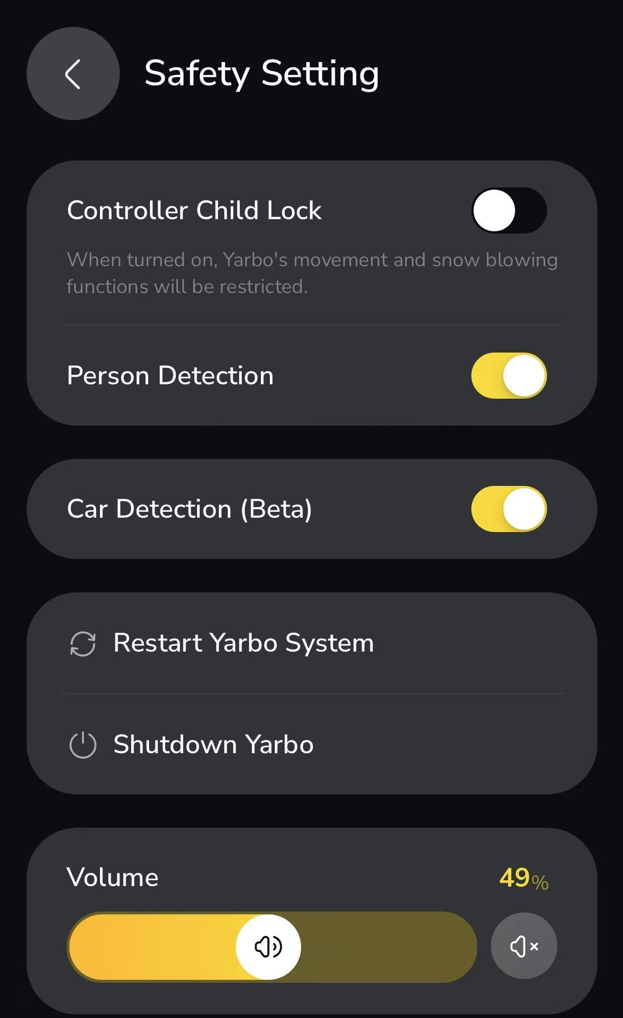 ¶ Restart Yarbo System & Shutdown YarboThese options allow you to manage system power:
