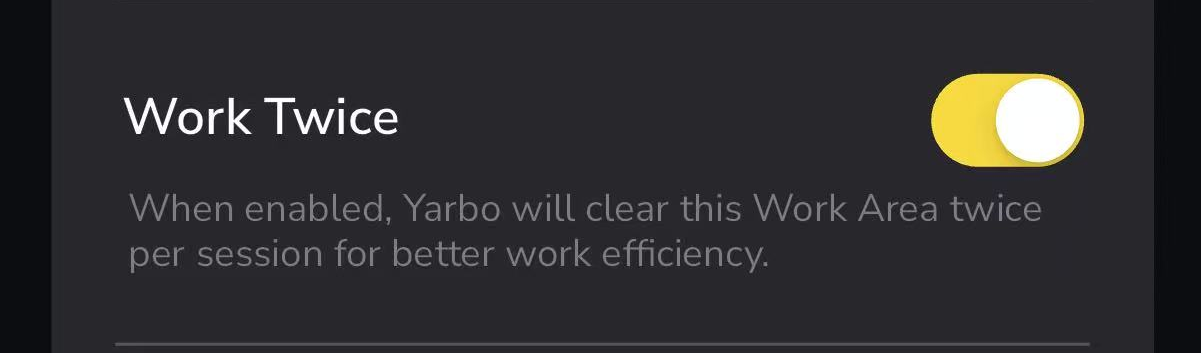 When Work Twice is enabled, Yarbo will perform two consecutive passes over the same Work Area in one session.