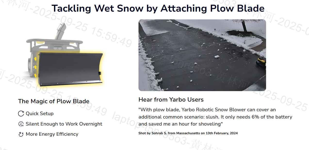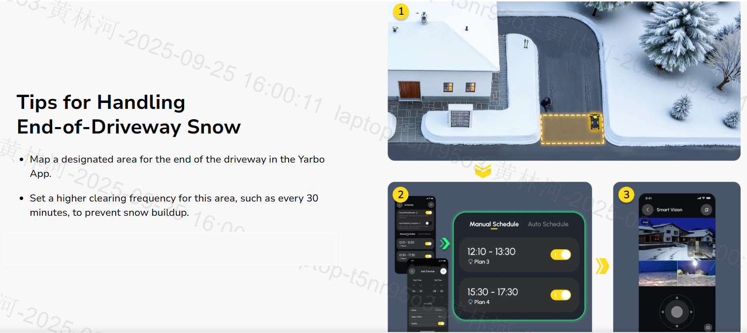 End-of-driveway piles: Yarbo can clear them, but it does not yet fully auto-detect edges. For frequent snowfalls, use scheduled mode. For wet snow, consider starting with the plow module for higher efficiency.